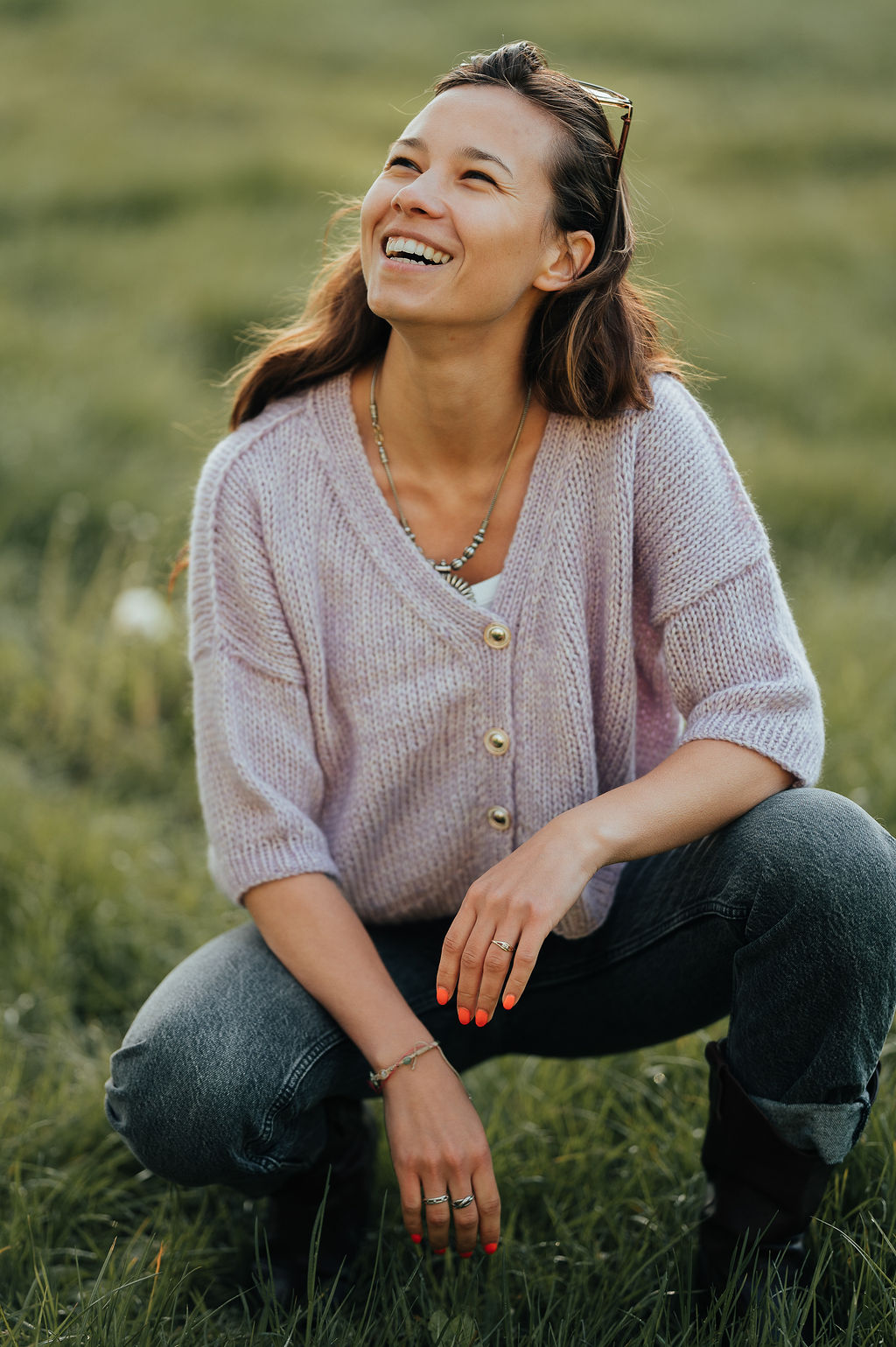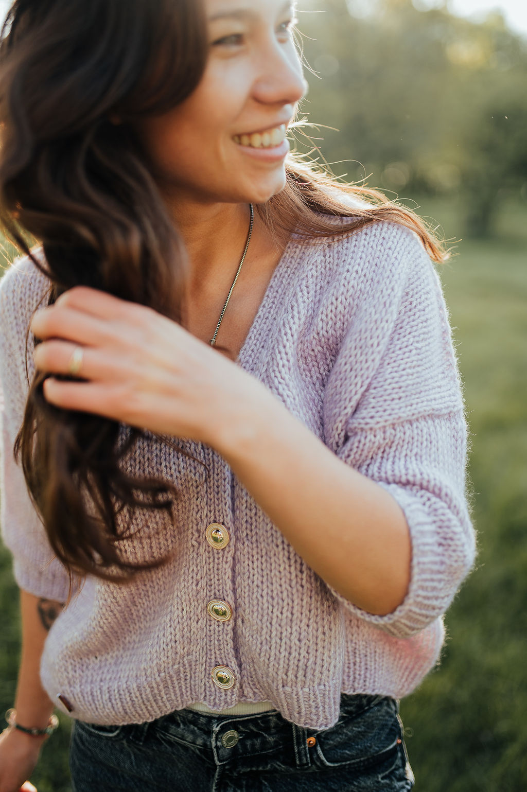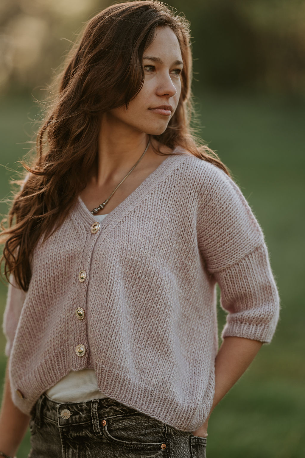 Lekki, luźny kardigan, zapinany na 3 ozdobne guziki, które nadają klasy i elegancji.